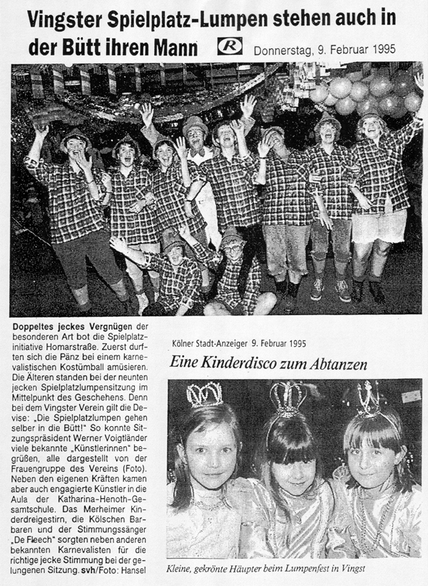 Bild: "Spellplatzlumpen stehen auch in der Bütt ihren Mannn" & "Kinderdisco"